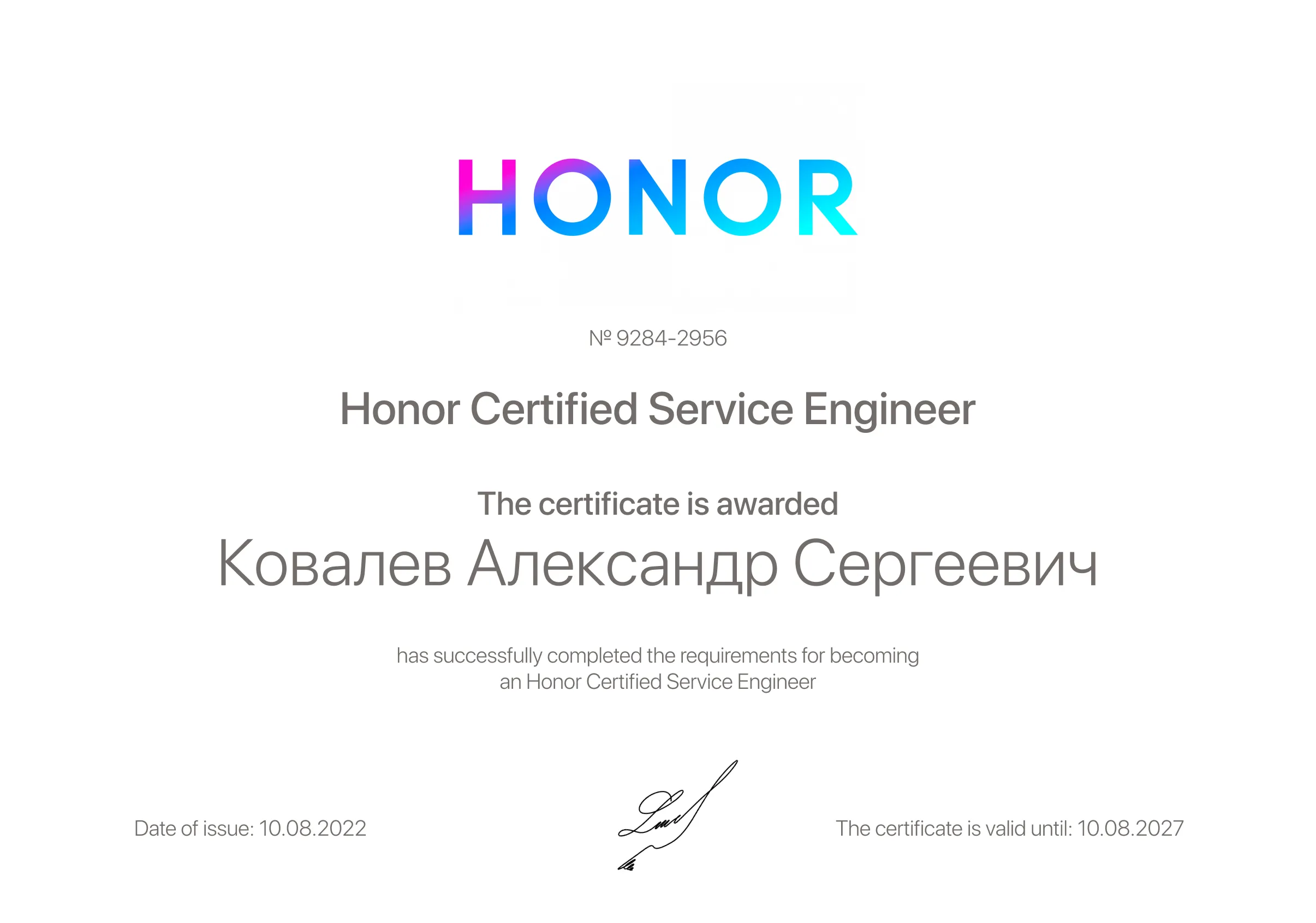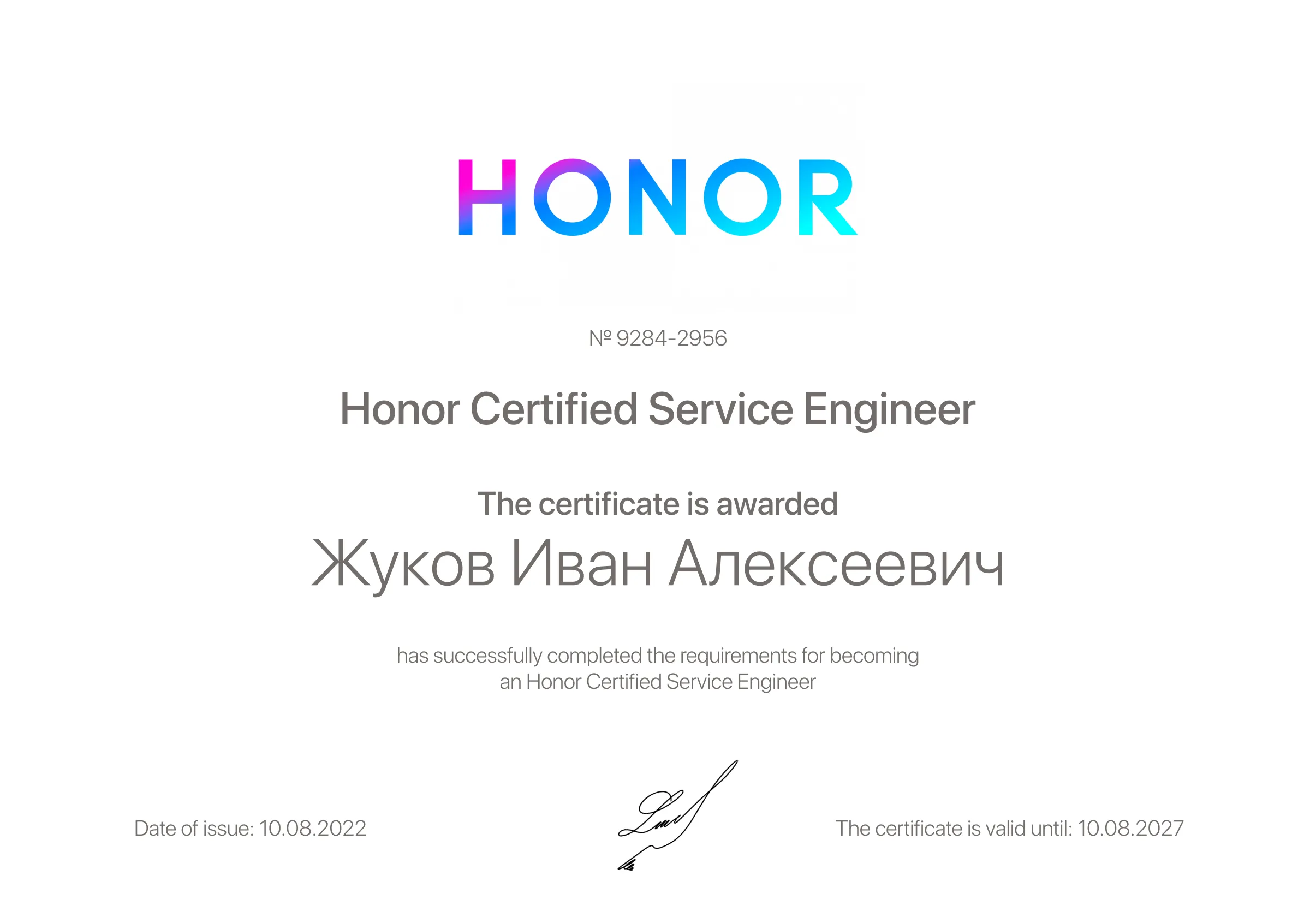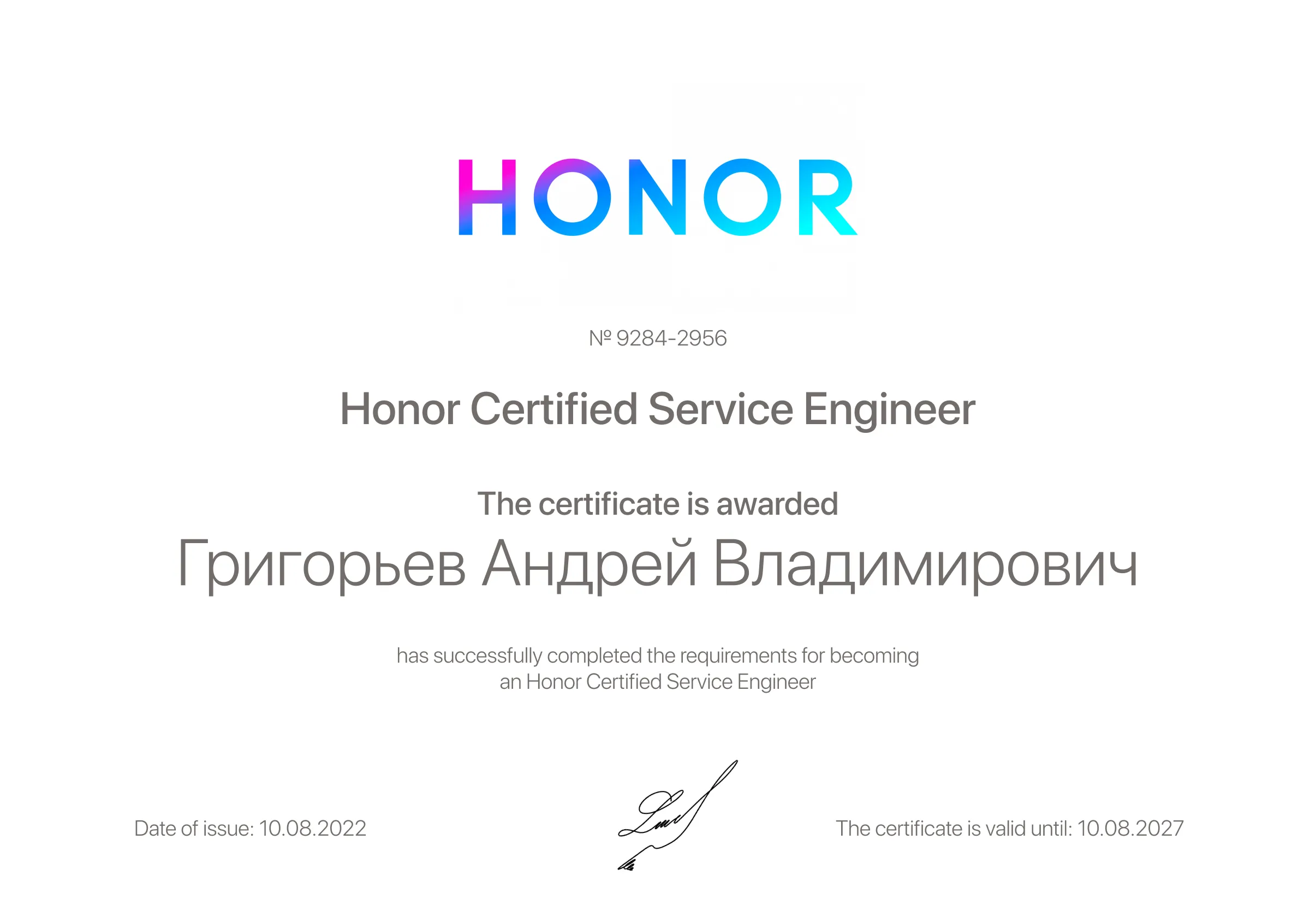 Предлагаем услуги по ремонту и обслуживанию любых устройств Honor после истечения на них гарантийного срока. Наш центр технического обслуживания является неавторизованным центром. Предложение цен на сайте не является публичной офертой. Все обозначения и упоминания торговой марки Хонор используются нами исключительно для информирования клиентов о предоставляемых услугах.